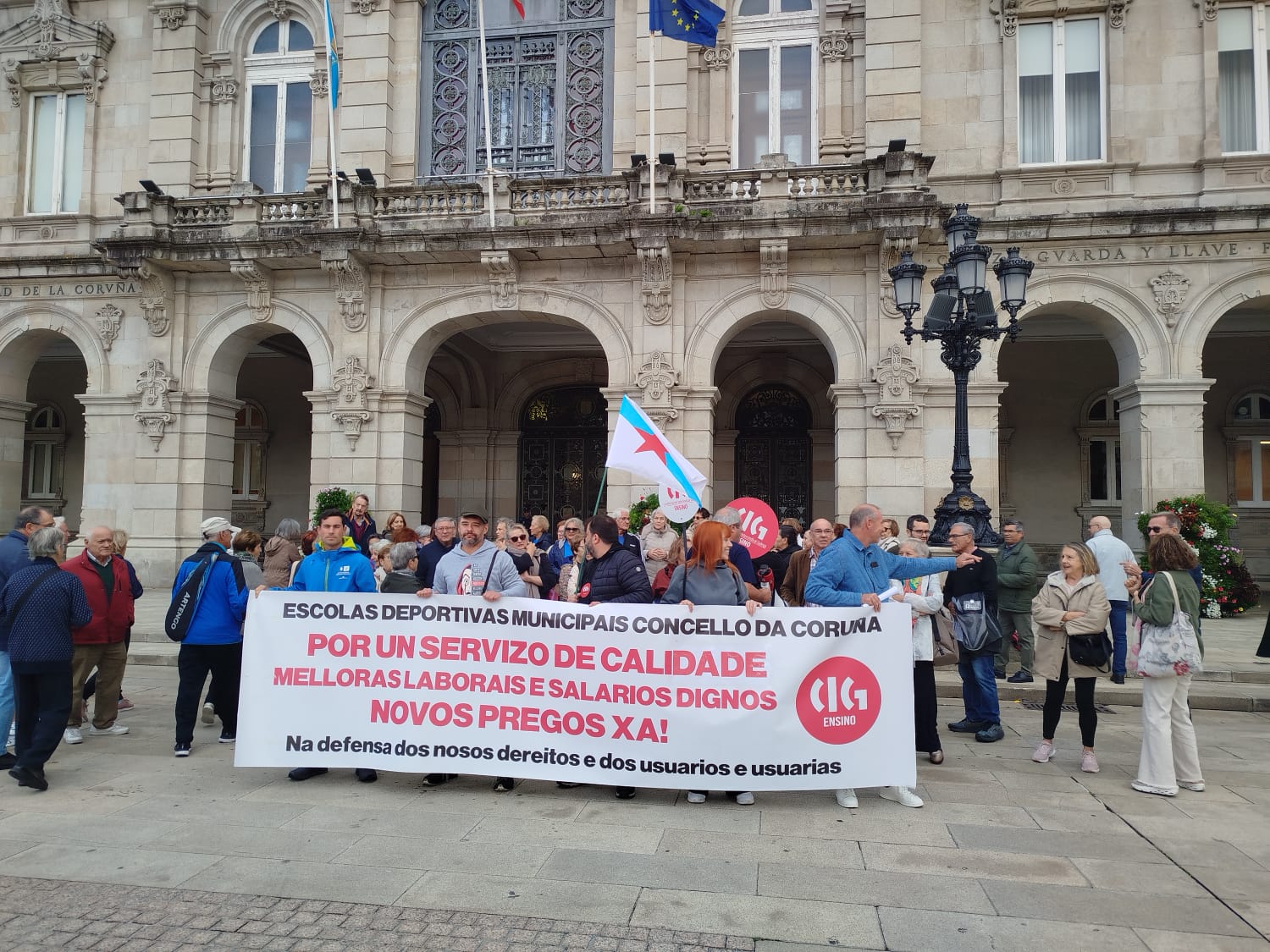 Representantes do persoal de Albada mobilízanse en María Pita para demandar axilidade nos pregos