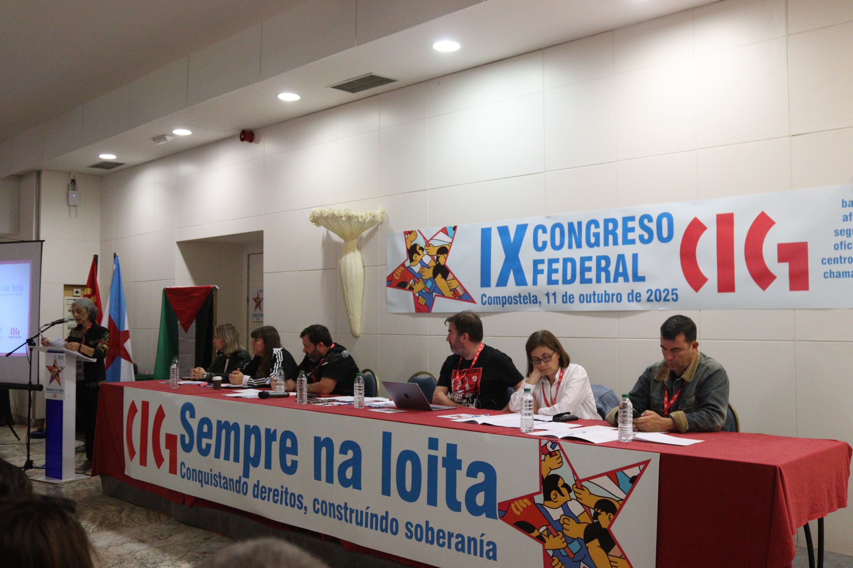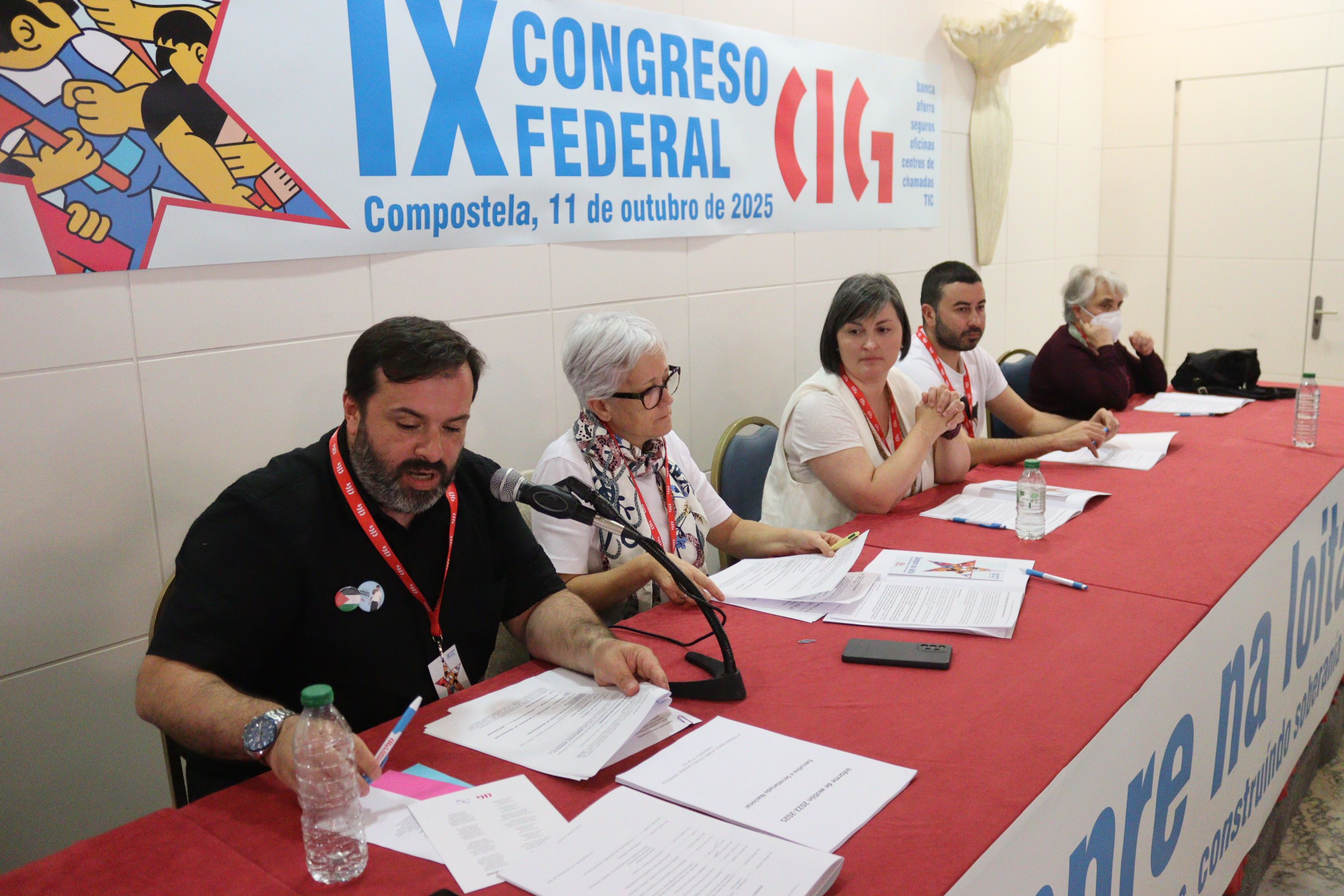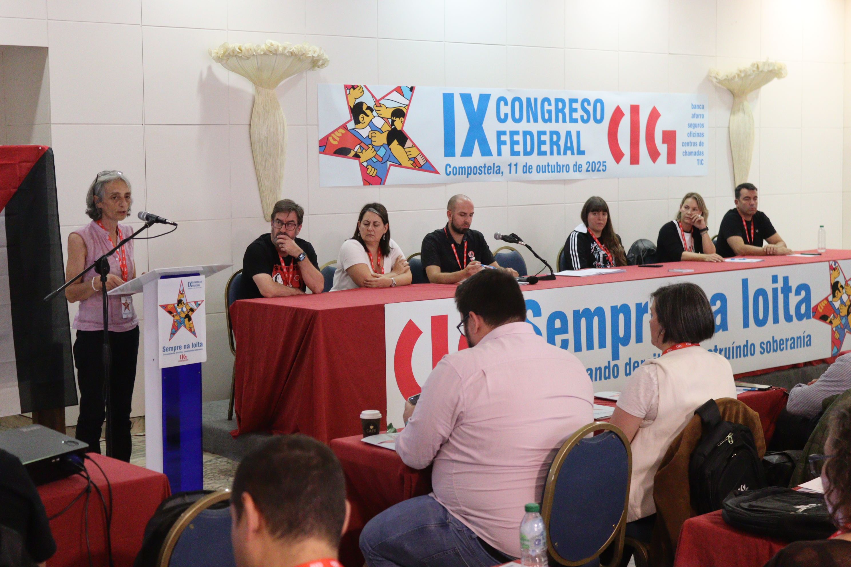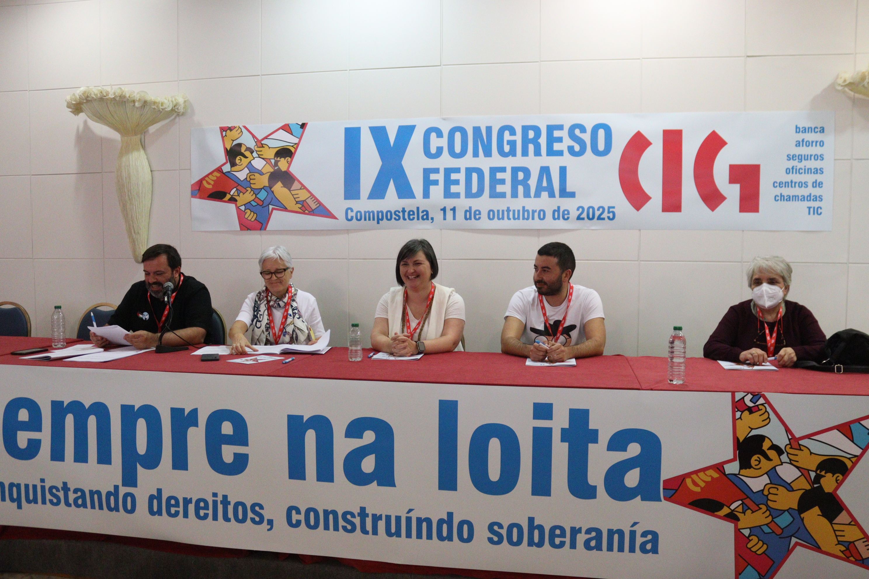 A federación de Banca, Aforro, Seguros, Oficinas, Centros de Chamadas e TIC da CIG celebrou esta mañá o seu IX Congreso, ao que concorreu unha única candidatura encabezada por Sefi Romero Álvarez, que foi reelixida secretaria nacional con 110 votos a favor e 1 brancos. No proceso, desenvolto baixo o lema “Sempre na loita, conquistando dereitos, construíndo soberanía”, escolleuse á nova Executiva federal e aprobouse o Informe de Xestión da Executiva e máis os relatorios nos que se marcan as liñas de traballo que guiarán a acción sindical da federación nos próximos catro anos.