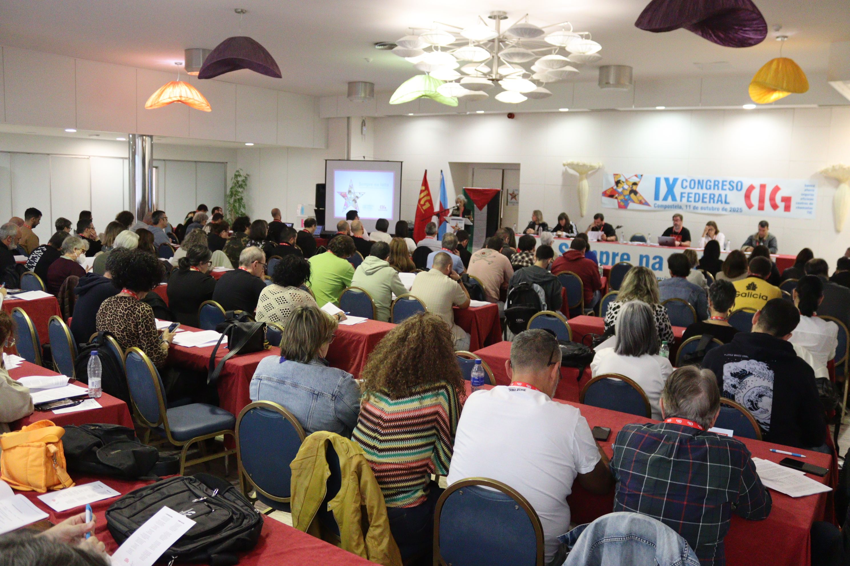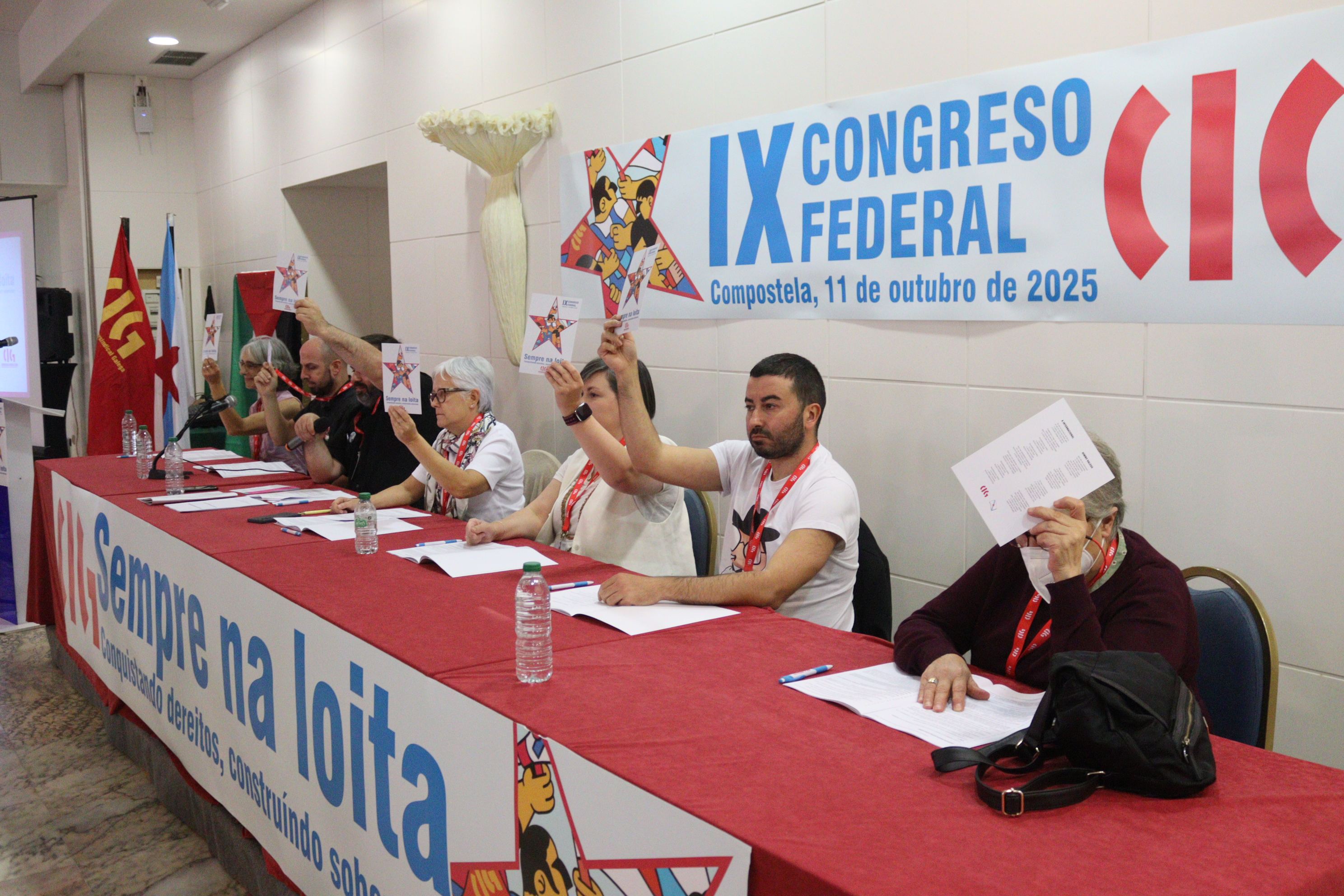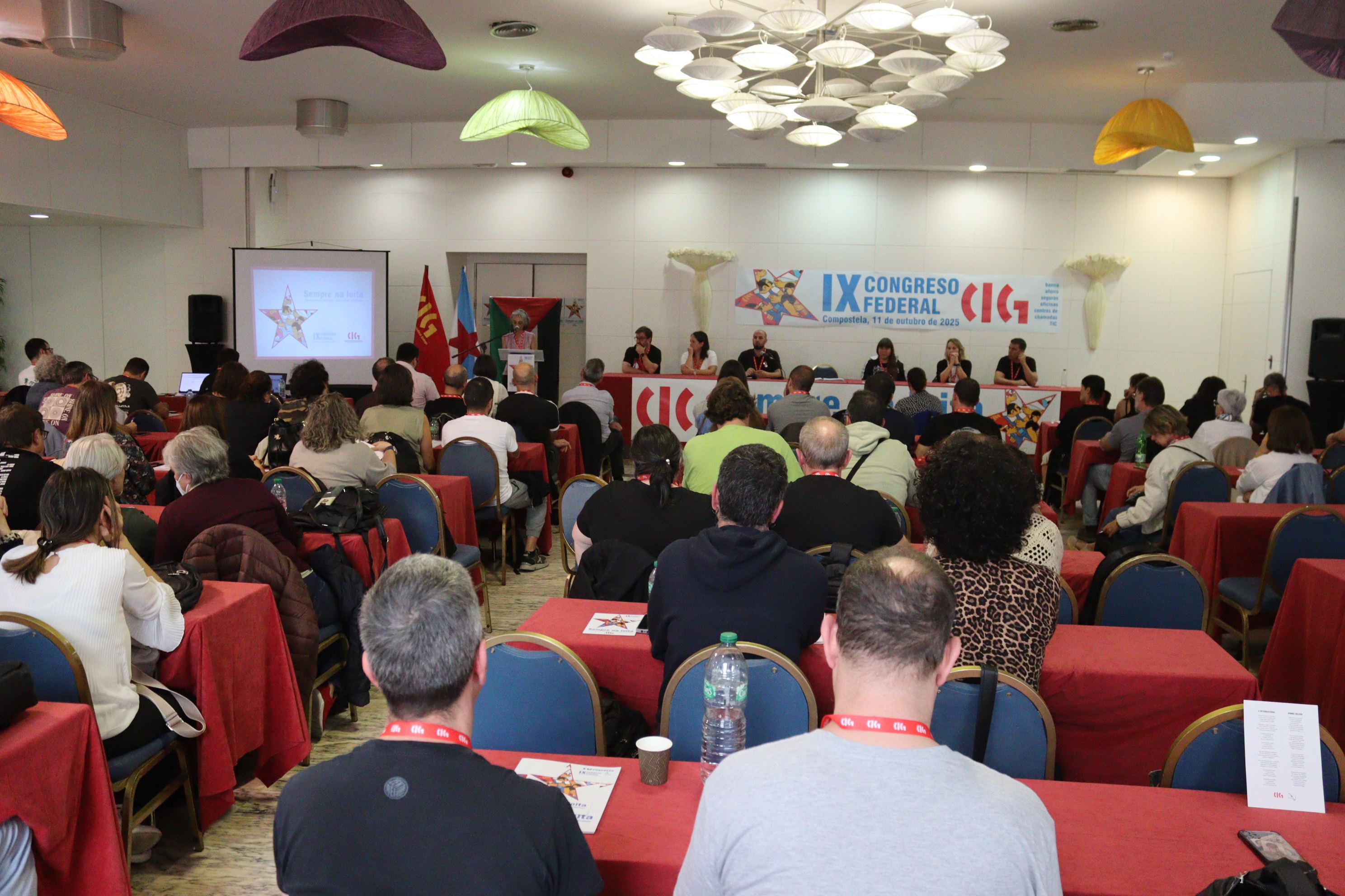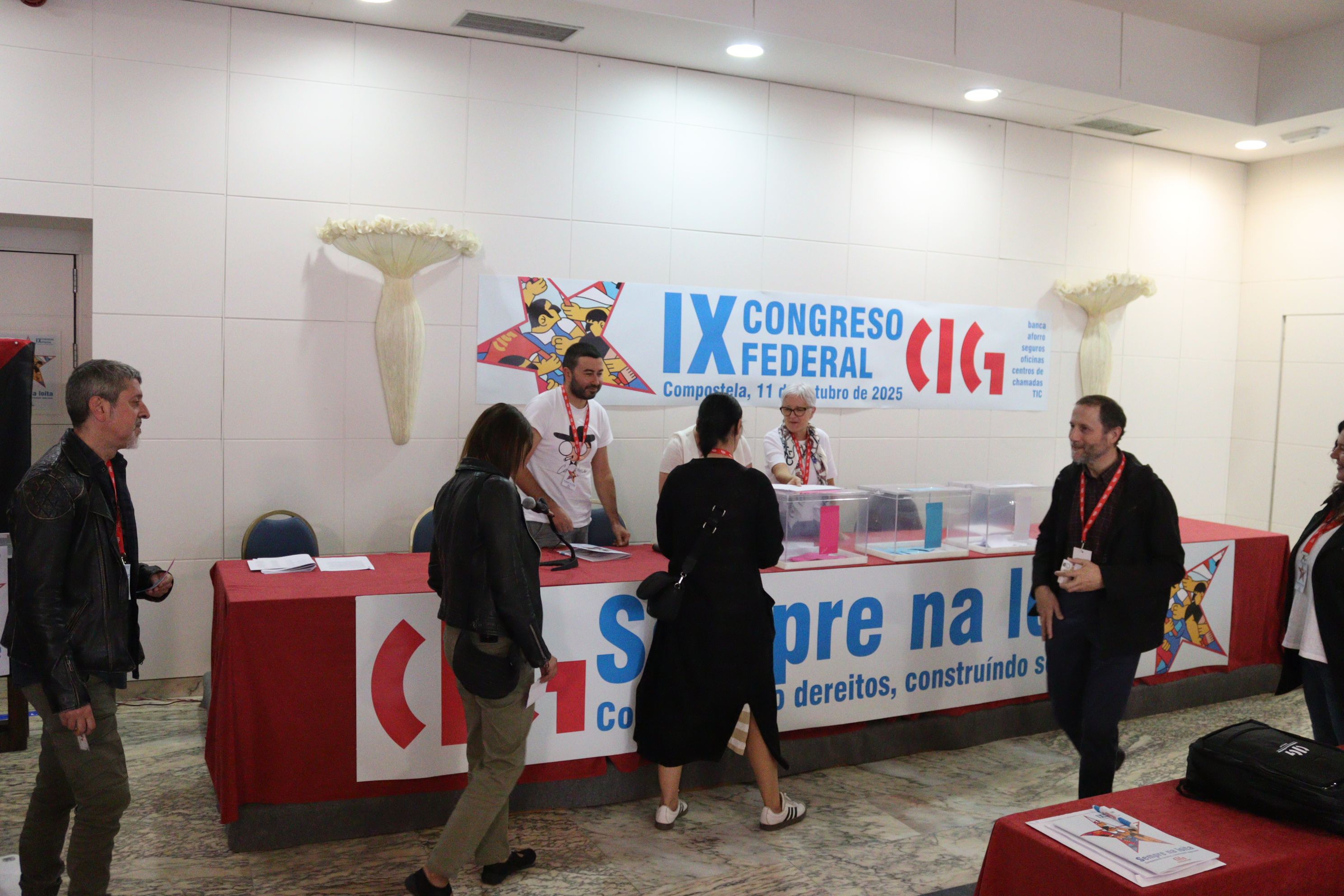 A federación de Banca, Aforro, Seguros, Oficinas, Centros de Chamadas e TIC da CIG celebrou esta mañá o seu IX Congreso, ao que concorreu unha única candidatura encabezada por Sefi Romero Álvarez, que foi reelixida secretaria nacional con 110 votos a favor e 1 brancos. No proceso, desenvolto baixo o lema “Sempre na loita, conquistando dereitos, construíndo soberanía”, escolleuse á nova Executiva federal e aprobouse o Informe de Xestión da Executiva e máis os relatorios nos que se marcan as liñas de traballo que guiarán a acción sindical da federación nos próximos catro anos.