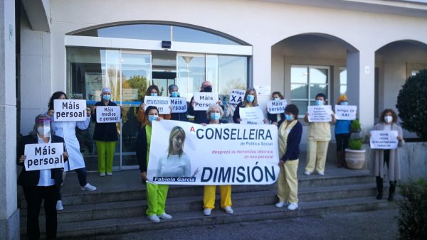 O persoal dos centros de atención directa da Consellaría de Política Social continuou onte, como cada xoves dende hai meses, coas concentracións diante dos seus centros de traballo para reclamar a recuperación dos dereitos laborais recortados coa escusa da crise en 2012 e para esixir uns servizos de atención ás persoas 100% públicos e de calidade.