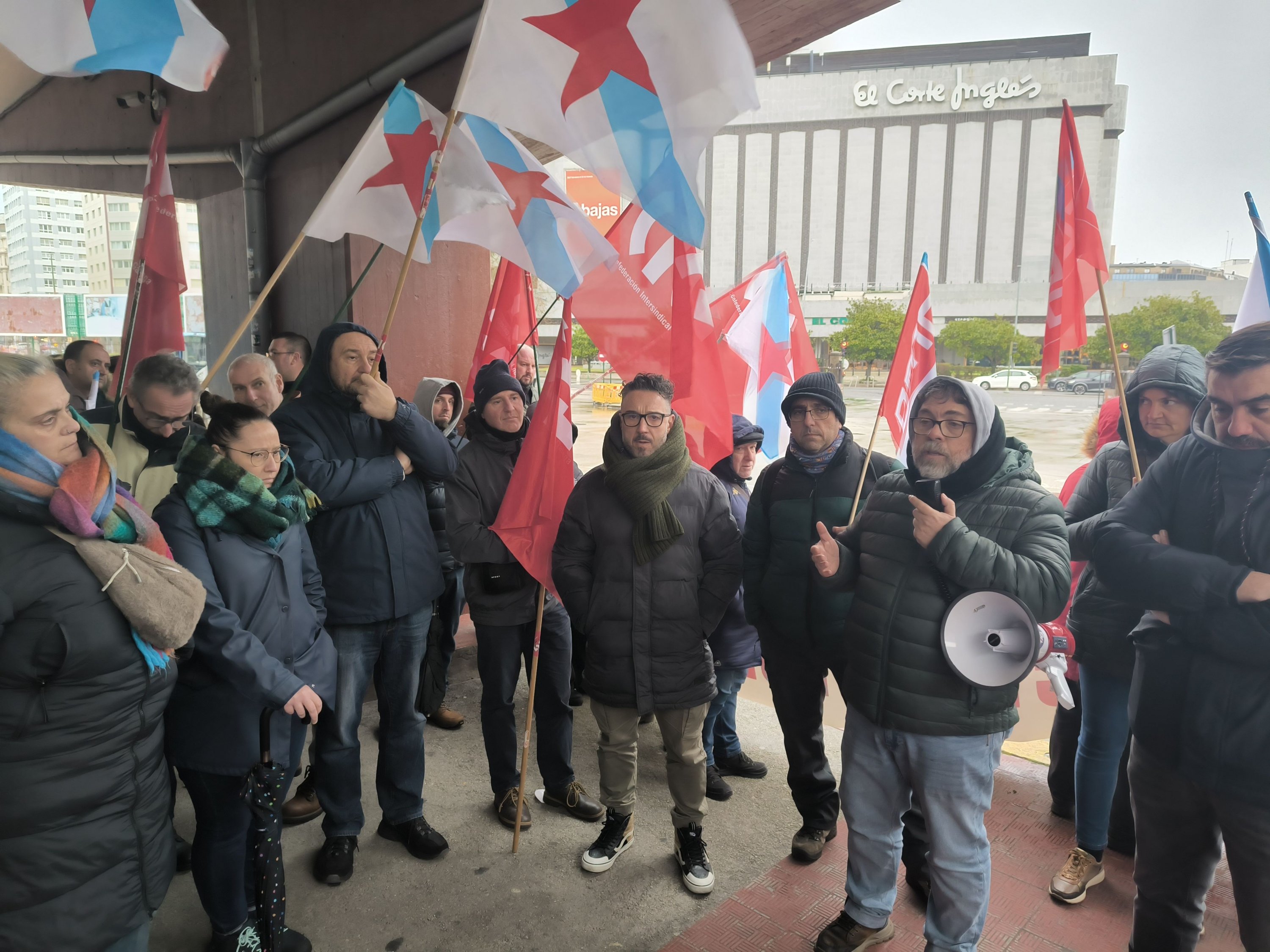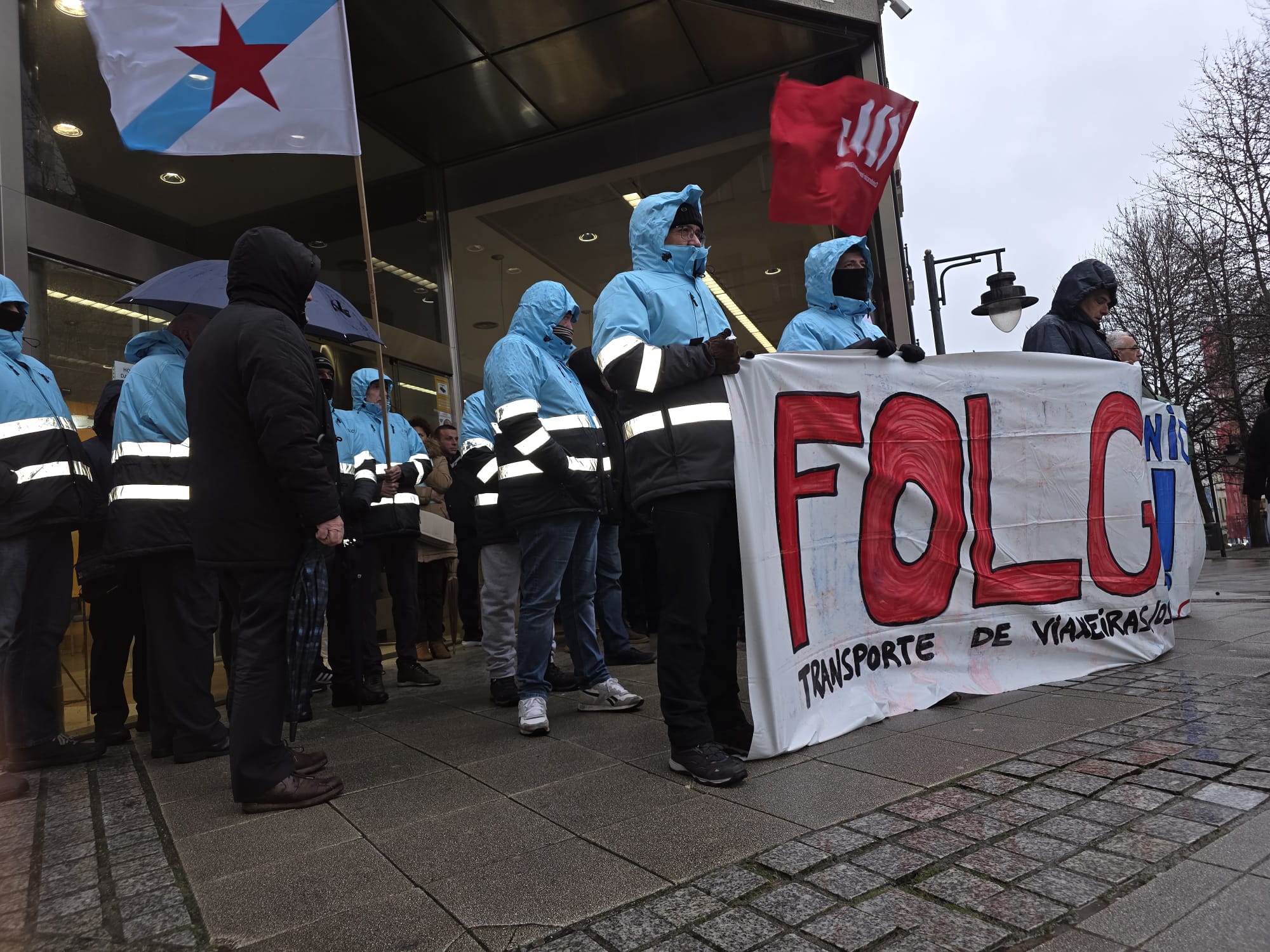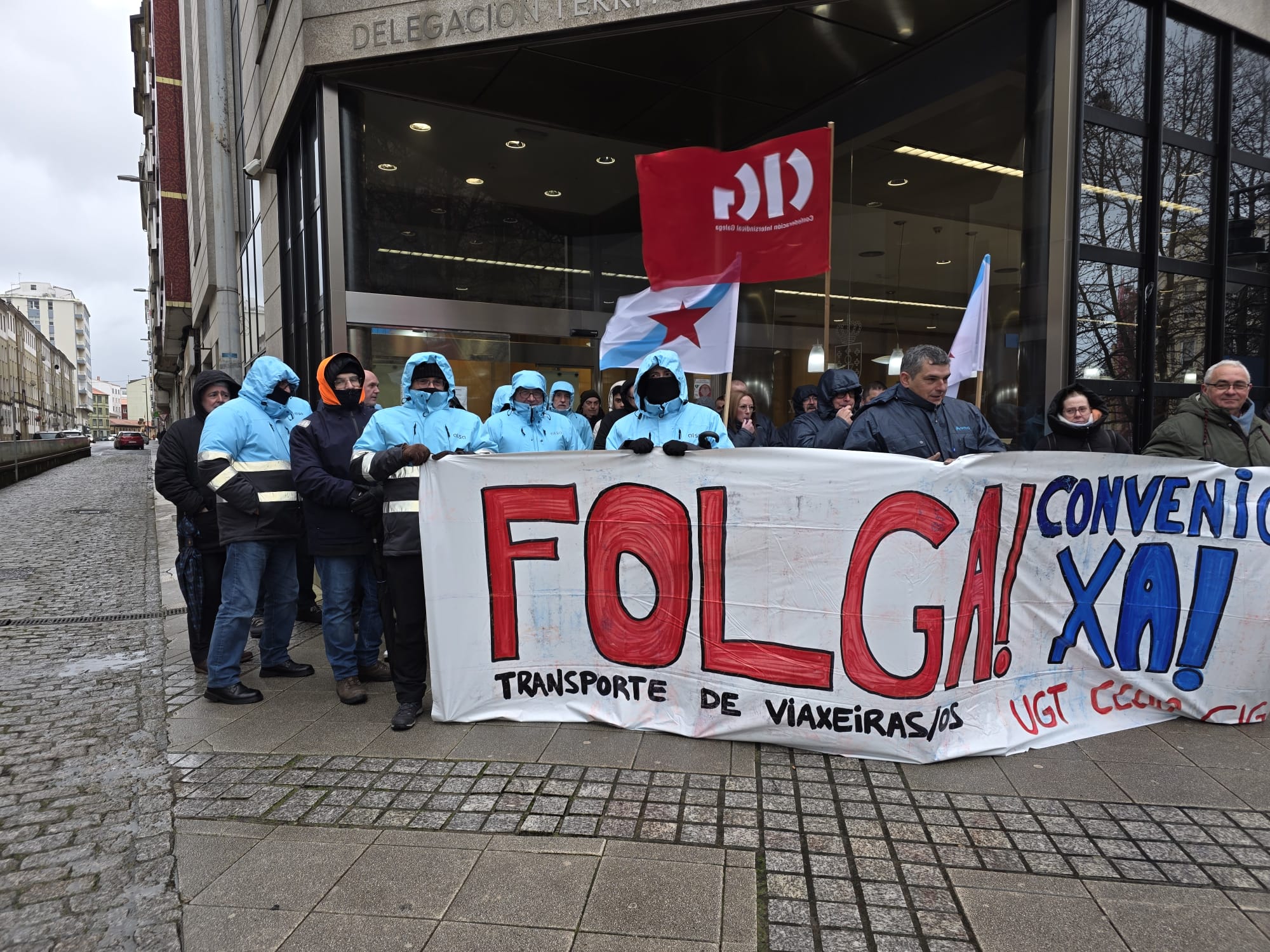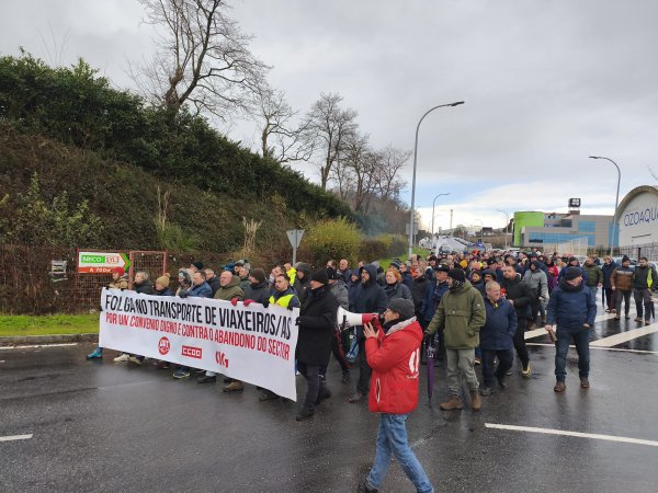 Para darlle visibilidade á súa loita, ademais dos piquetes informativos despregados dende primeira hora, o persoal concentrouse na estación da Coruña e diante do edificio da Xunta en Ferrol, mentres que en Compostela saíron en manifestación dende as cocheiras de Monbús en Amio.