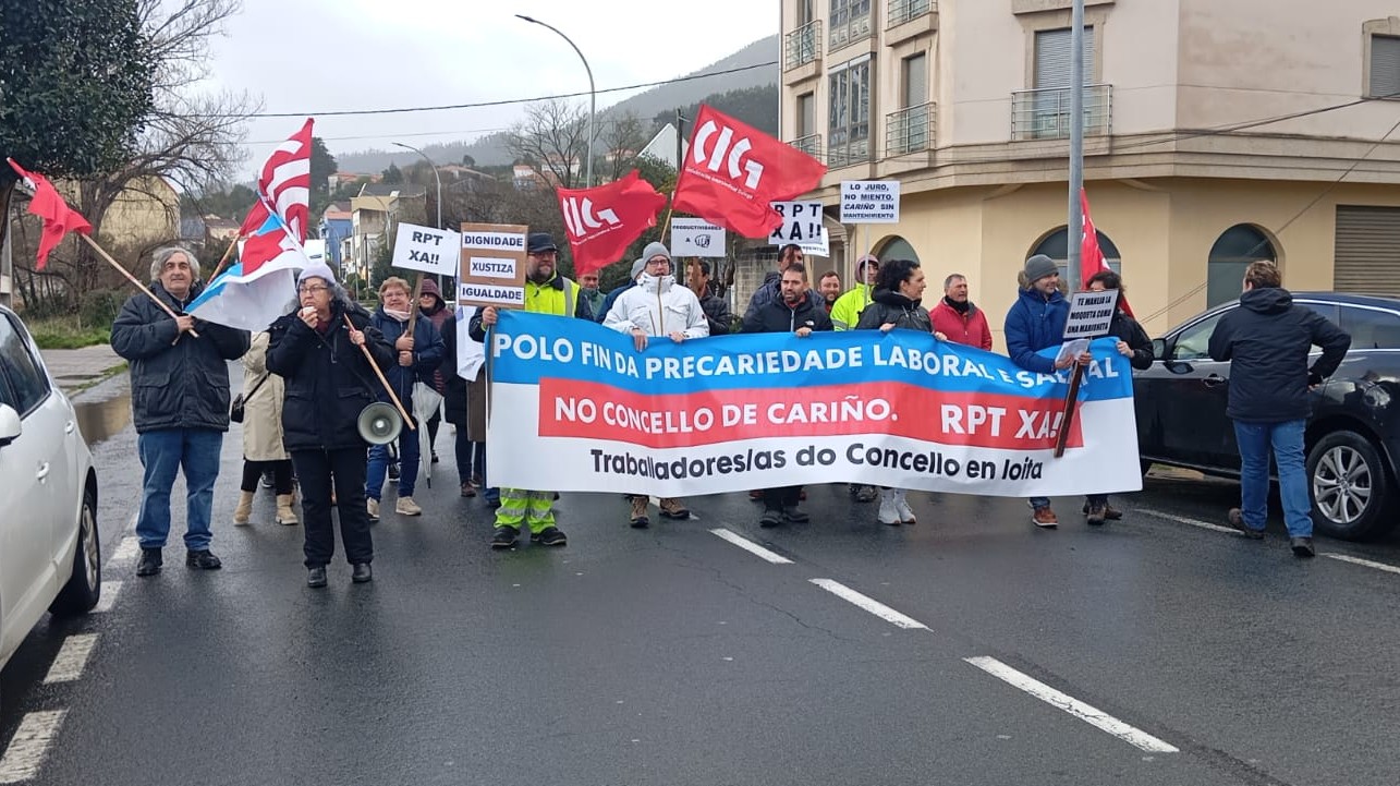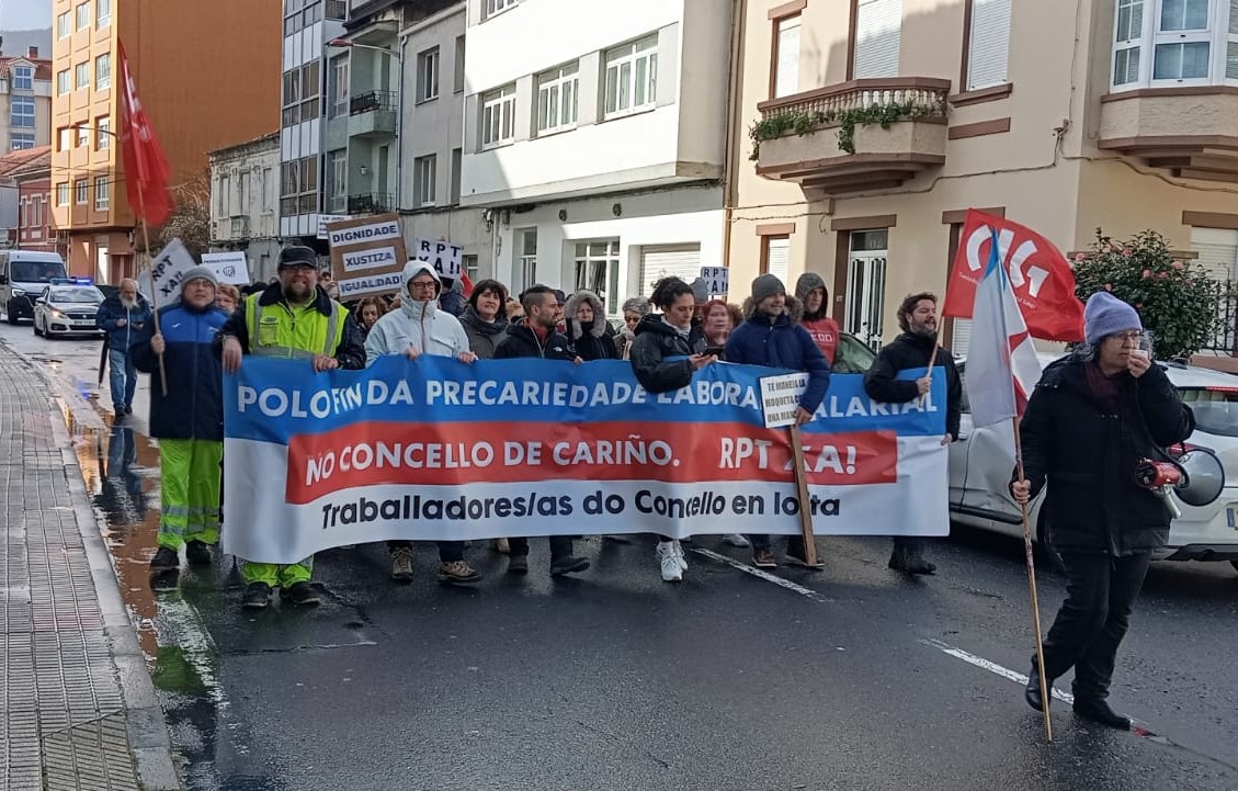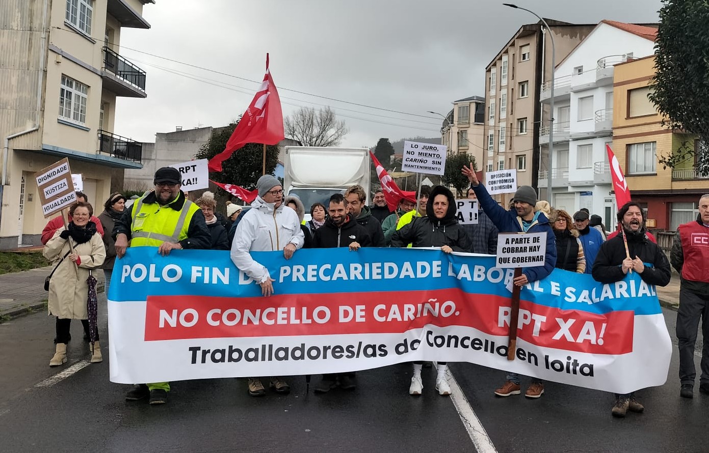 O persoal municipal do Concello de Cariño está en loita por unhas condicións laborais e salariais dignas. Logo das concentracións e cazoladas periódicas e da manifestación do pasado domingo, este venres a práctica totalidade das traballadoras e traballadores secundaron a folga de catro horas para exixir a negociación e aprobación da Relación de Postos de Traballo que levan demandando dende hai 18 anos.