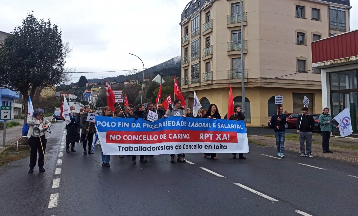 O persoal municipal do Concello de Cariño continúa adiante coas mobilizacións para reclamar a aprobación da Relación de Postos de Traballo e que se respecten os seus dereitos laborais e salariais. Logo das numerosas mobilizacións realizadas nos últimos dous meses e ante a falta de propostas e de negociación por parte da Alcaldía, este mércores o persoal secundou unha nova xornada de folga -que terá continuidade no día de mañá- que rexistrou un seguimento de practicamente o 100% entre o persoal laboral.