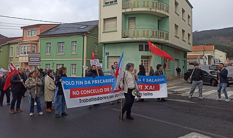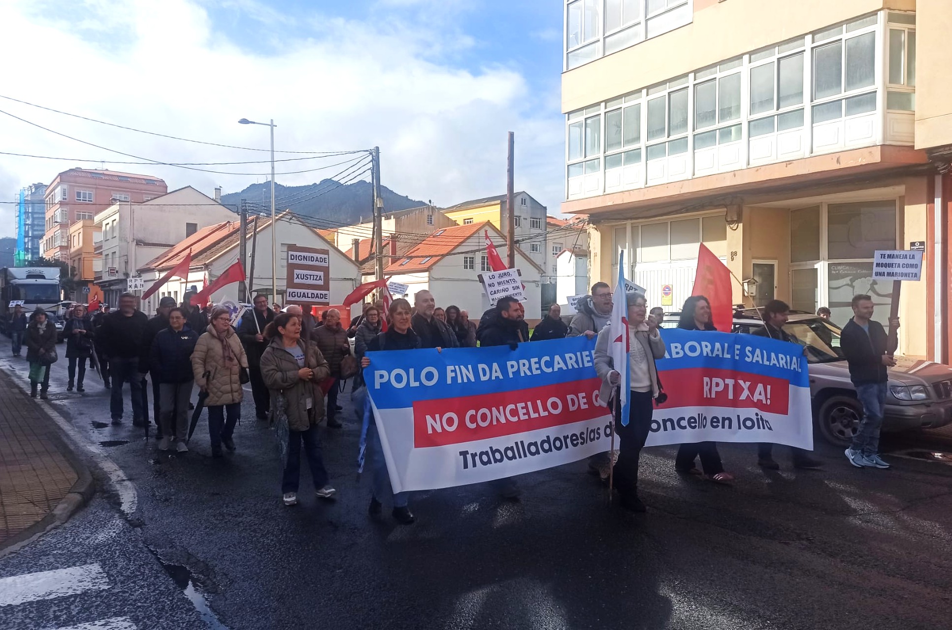 Ademais, para visibilizar e socializar a súa loita entre a veciñanza, as traballadoras e traballadores manifestáronse esta mañá dende O Sagrón até a Casa Consistorial, onde deron lectura a un comunicado.