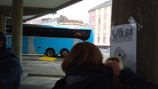 O seguimento da segunda xornada de folga no transporte de persoas viaxeiras por estrada da provincia da Coruña está a rexistrar un seguimento practicamente total. Ademais dos habituais piquetes informativos, o persoal visibilizou as súas demandas a prol dun convenio digno con concentracións nas estacións de autobuses da Coruña e Santiago e diante do edificio administrativo de Ferrol.