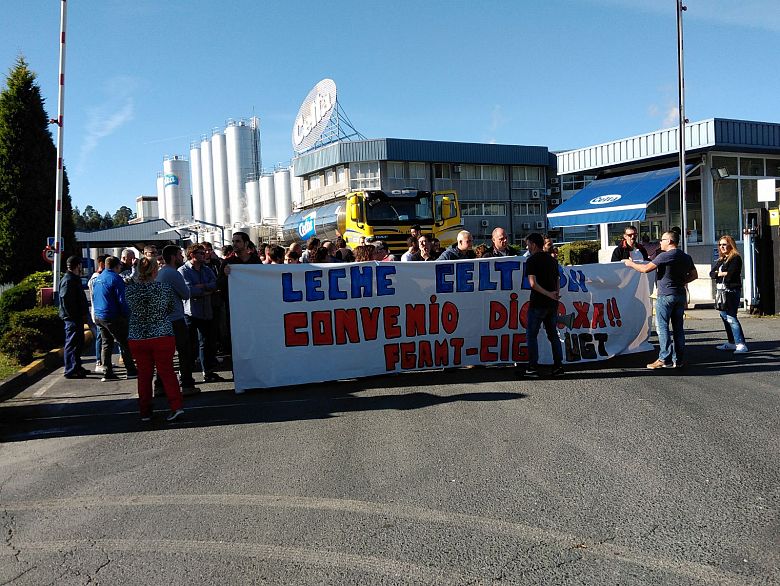 A totalidade dos traballadores e as traballadoras de Leche Celta SLU secundan este luns a primeira xornada de folga para esixir o desbloqueo da negociación do convenio colectivo de empresa. Coincidindo coas horas de paros (que se realizan en horario de 12 a 16 horas) o persoal mantén unha concentración diante da planta de Andrade (Pontedeume) nun ambiente lúdico-reivindicativo.