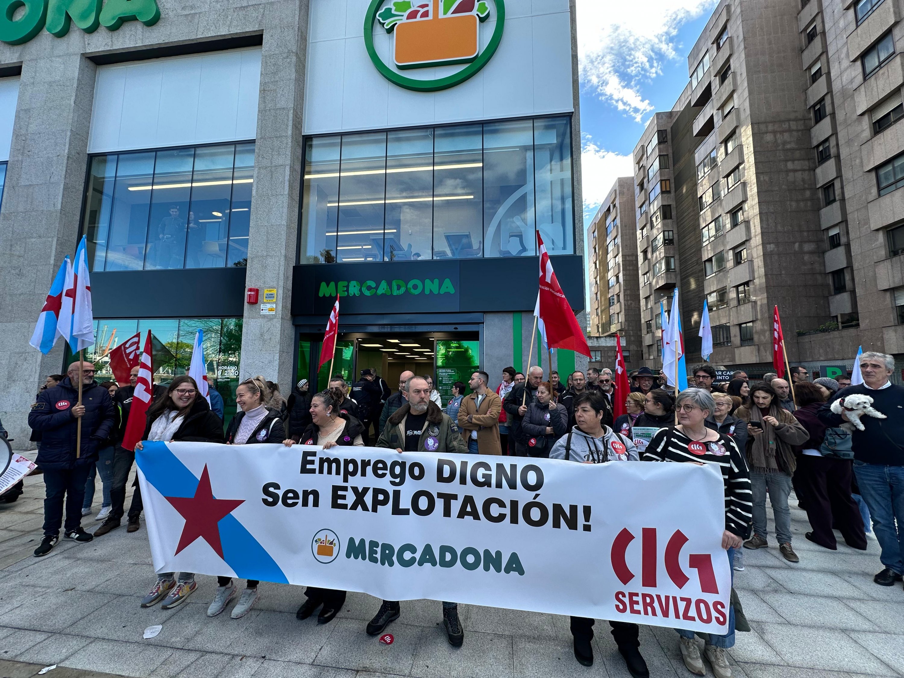 A CIG-Servizos desenvolveu hoxe unha nova concentración contra o acoso laboral en Mercadona e para rexeitar unha política empresarial interna baseada en insultos, berros, chantaxes, abusos de poder e vulneración de dereitos. Nesta ocasión a protesta tivo lugar en Vigo coincidindo coa inauguración dun supermercado da marca na avenida García Barbón, un grupo de persoas traballadoras e delegadas sindicias se mobilizaron ao berro de “Sen saúde laboral Mercadona vai moi mal”.