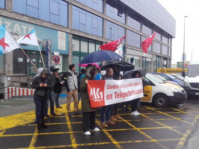 Traballadores e traballadoras de Teleperformance realizaron este venres unha concentración diante das oficinas da empresa contra para rexeitar o despedimento de entre 40 e 50 compañeiras/os, a quen a dirección comunicou o seu cese menos de unha semana despois de seren contratadas/os e tras pasar un proceso de formación non retribuído de cinco 5 semanas. Para a sección sindical da CIG, que convocou a protesta, estamos ante un novo exemplo da precariedade e a explotación laboral no sector dos centros de chamadas.
