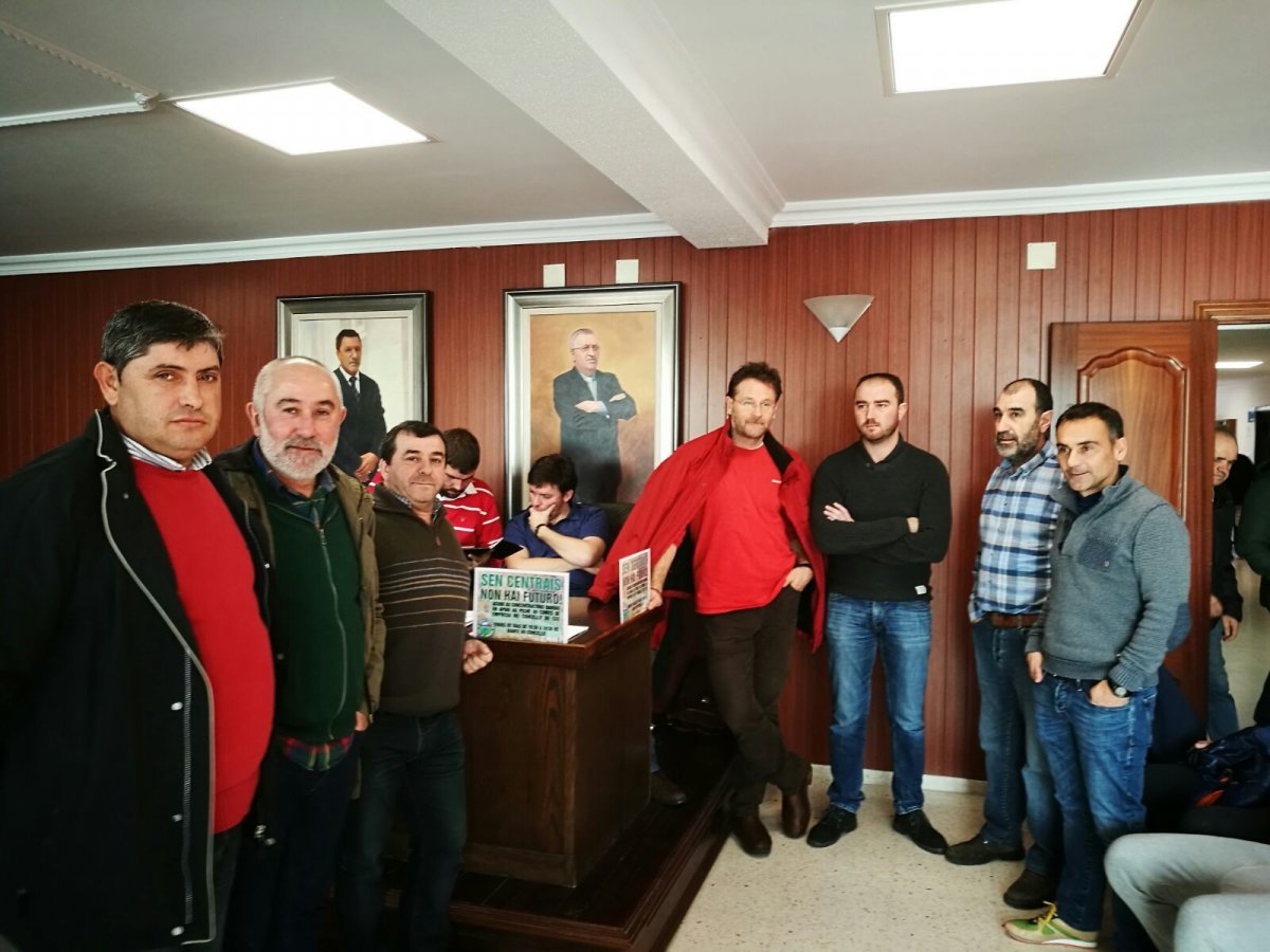 O Secretario Nacional da CIG-Industria, Xoán Xosé Bouzas 'Tupi', e o responsábel de enerxía da Federación, Fernando Blanco, achegáronse esta mañá até o Concello de Cee para trasladar o apoio á loita que desenvolven os traballadores e traballadoras de Ferroatlántica en contra da venda das centrais hidroeléctricas.