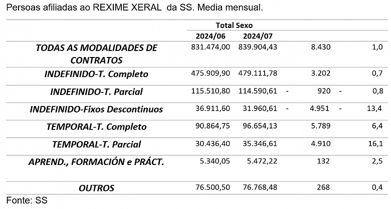 No que ten a ver coas persoas afiliadas ao réxime xeral da Seguridade Social, houbo 8.500 altas que teñen que ver, na súa inmensa maioría, co aumento da temporalidade “até o punto de que a día de hoxe medrou nun punto e é xa do 25,5%”.