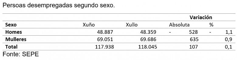 Todo o desemprego rexistrado no mes de xullo foi entre as mulleres