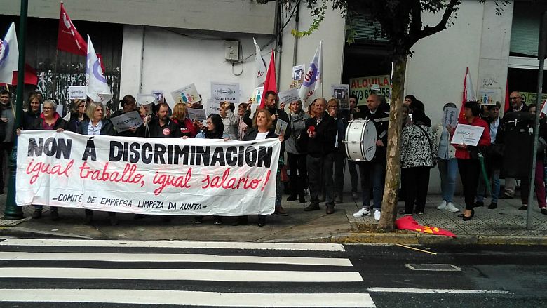 Persoal da empresa concesionaria do servizo de limpeza da Xunta, Grupo Norte, trasladou este xoves as súas reivindicacións até as portas do Parlamento de Galiza en demanda da igualdade retributiva, dada a brecha salarial existente por mor do non recoñecemento da categoría profesional de peón especialista a ningunha das traballadoras.
