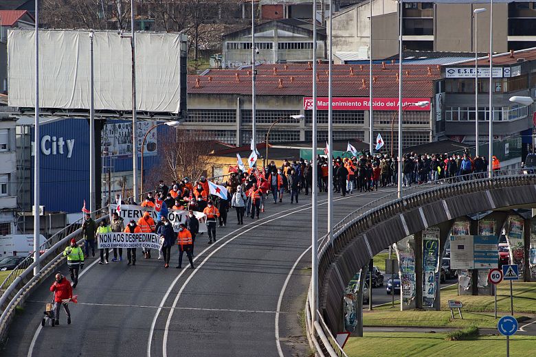 Traballadores e traballadoras de Alu Ibérica, en folga indefinida dende o pasado 26 de decembro para esixir a readmisión dunha compañeira e o cese da persecución sindical, marcharon este sábado dende a fábrica até a Delegación do Goberno para demandar a intervención inmediata das administracións española e galega que permita retomar a actividade industrial e garantir o mantemento dos empregos.