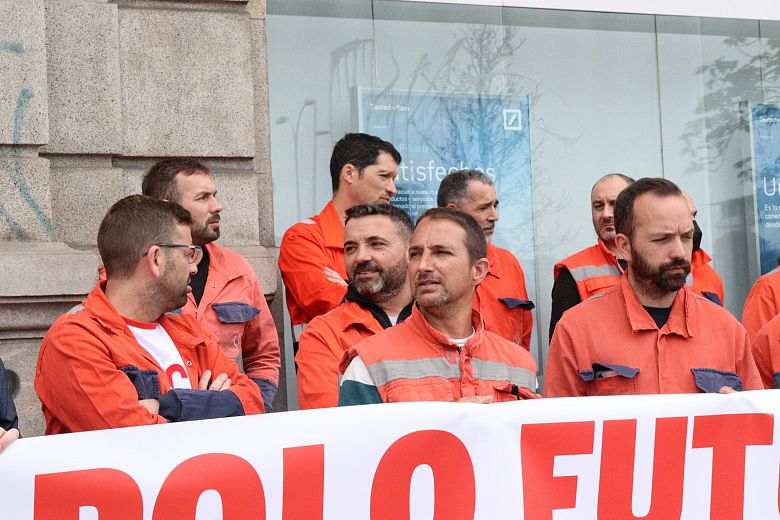 Traballadores de Celsa Atlantic concentráronse este venres diante da oficina que a entidade Deutsche Bank ten na Coruña para manifestar a profunda preocupación ante a grave situación que atreva a factoría da Laracha pola falta de financiamento, nun momento no que o desacordo cos fondos de acredores para reestruturar a débeda da empresa pon en risco a vía do financiamento público.