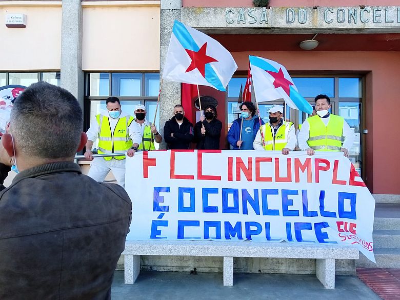 A protesta, secundada pola totalidade do cadro de persoal, realizouse diante da Casa do Concello e na mesma denunciouse a negativa de FCC a actualizar os salarios, a supresión dunha paga de beneficios e os constantes incumprimentos dos pregos de condicións, que obrigan os traballadores a ter que reclamar os seus dereitos nos xulgados.