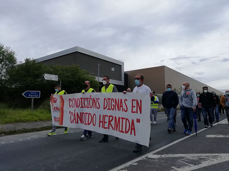 Traballadores do Grupo Cándido Hermida fixeron unha marcha a pé este venres dende a nave da empresa no Polígono do Río do Pozo até o Concello de Narón para esixir a readmisión dos 23 compañeiros despedidos nas distintas empresas da compañía, así como en rexeitamento a posíbeis recortes que a dirección pretenda aplicar nas condicións de traballo.