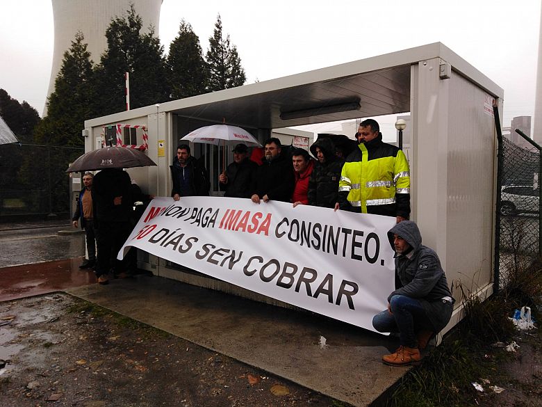 Traballadores de M3, subcontrata de Imasa, desenvolveron unha concentración este xoves nas portas da central térmica das Pontes para denunciar que levan mes e medio sen cobrar. Este persoal, unhas 30 persoas, foi subcontratado para facer traballos nas obras de mellora na central de Endesa e nestes momentos xa foron despedidos.