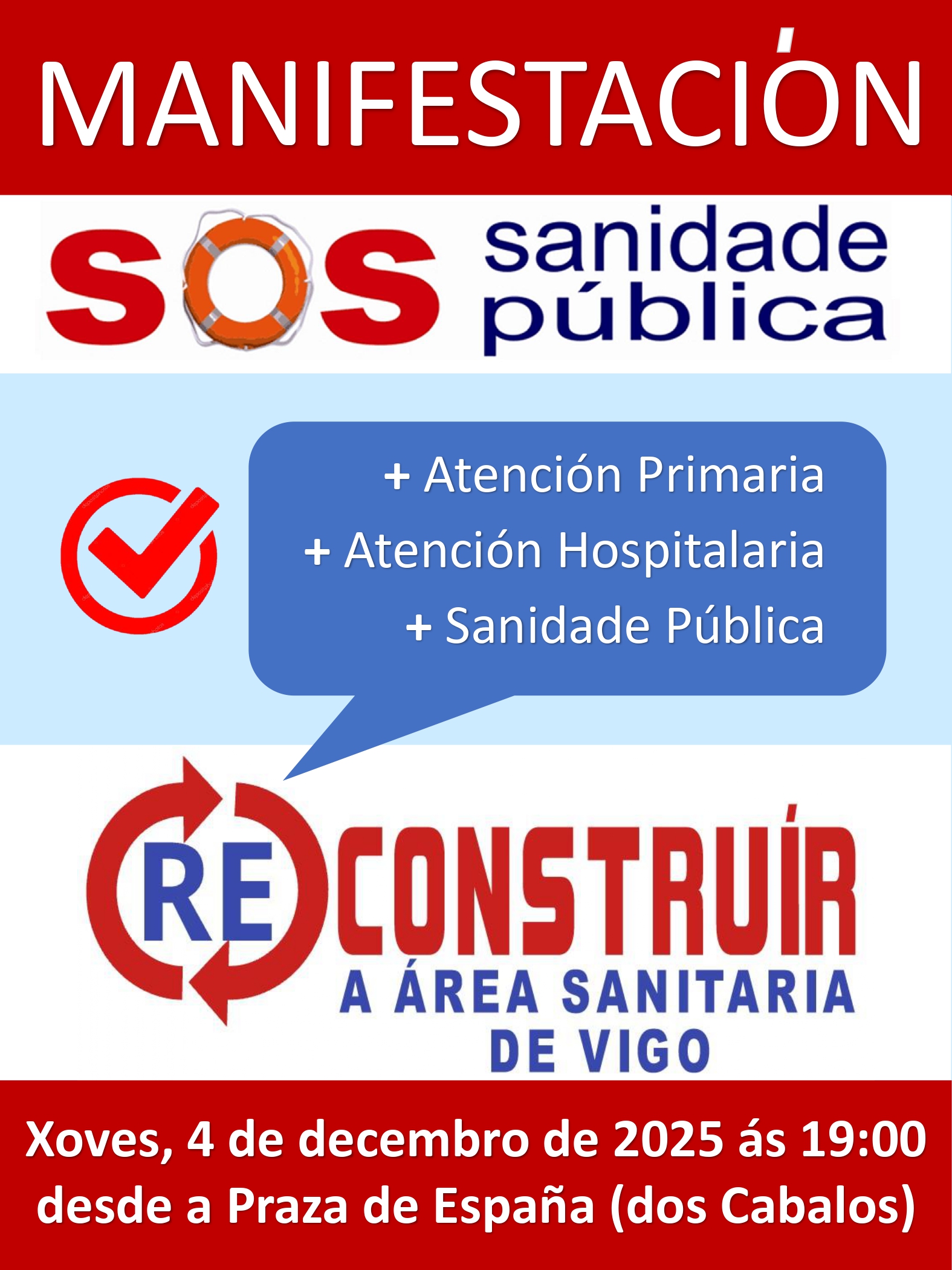 “Para que todo isto sexa posible é necesario garantir o incremento da inversión en sanidade pública na área sanitaria de Vigo, e que os cartos de todas e todos se utilicen para reforzar a atención hospitalaria e recuperar a Atención Primaria, e non para incrementar o negocio da sanidade privada”, remata o manifesto.