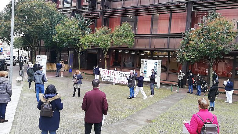 As traballadoras/es de Samyl, concesionaria do servizo de limpeza do campus norte da Universidade de Vigo en Ourense, forzou finalmente unha xuntanza coa dirección tras a protesta que tivo lugar onte para denunciar que a empresa está a eliminar horas de servizo, incumprindo o prego de condicións da adxudicación. Na mobilización participaron tamén delegados/as da CIG noutros sectores.