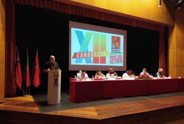 Unha representación da CIG, integrada polos secretarios comarcal e de organización de Vigo, Alberto Gonçalves e Anxo Igrexas, participou este venres no XII Congreso da União de Sindicatos do Porto/CGTP-IN. O máximo responsábel da CIG-Vigo interveu no encontro para expresar o compromiso internacionalista da central e a súa aposta polo sindicalismo non pactista, ao tempo que incidiu na vixencia da loita de clases e na necesidade de sumar forzas no campo popular da man de "sindicatos irmáns" como a União de Sindicatos do Porto/CGTP. O encontro serviu tamén para que os responsábeis sindicais galegos mantivesen un encontro informal coa nova secretaria xeral da CGTP-IN, Isabel Camarinha.