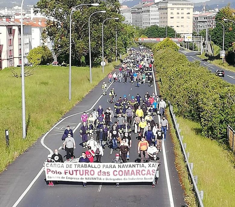 Traballadores e traballadoras de Navantia e das industria auxiliar realizaron esta mañá unha marcha a pé de 16 quilómetros que deu á volta á ría de Ferrol en demanda de carga de traballo inmediata para os estaleiros e que se fagan os investimentos necesarios para actualizar e ampliar as instalacións.
