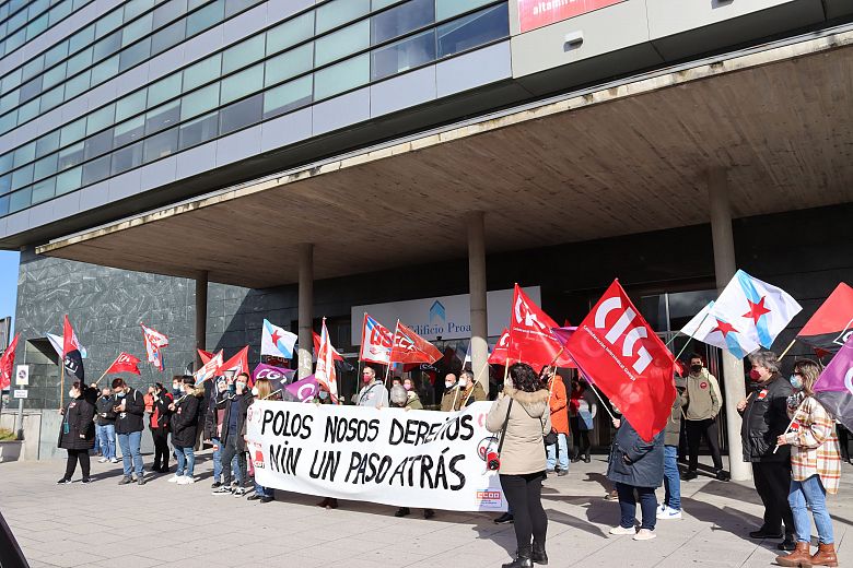 Para visibilizar a folga, o comité tamén realizou unha concentración ao mediodía diante das oficinas que a empresa ten en Matogrande, onde se corearon consignas contra a explotación e a precarización das condicións laborais que a dirección quere afondar "para aumentar a súa marxe de beneficios a conta de pisar os nosos dereitos".