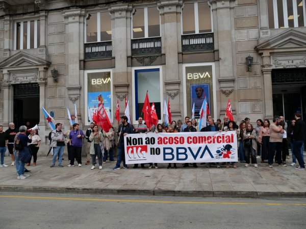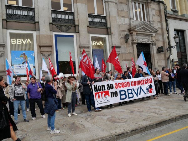 No caso do BBVA, con esta mobilización a CIG quixo denunciar o acoso comercial constante ao que está sometido o persoal do banco, para acadar os obxectivos marcados pola dirección “que son absolutamente desproporcionados e cunhas cargas de traballo non asumíbeis”.