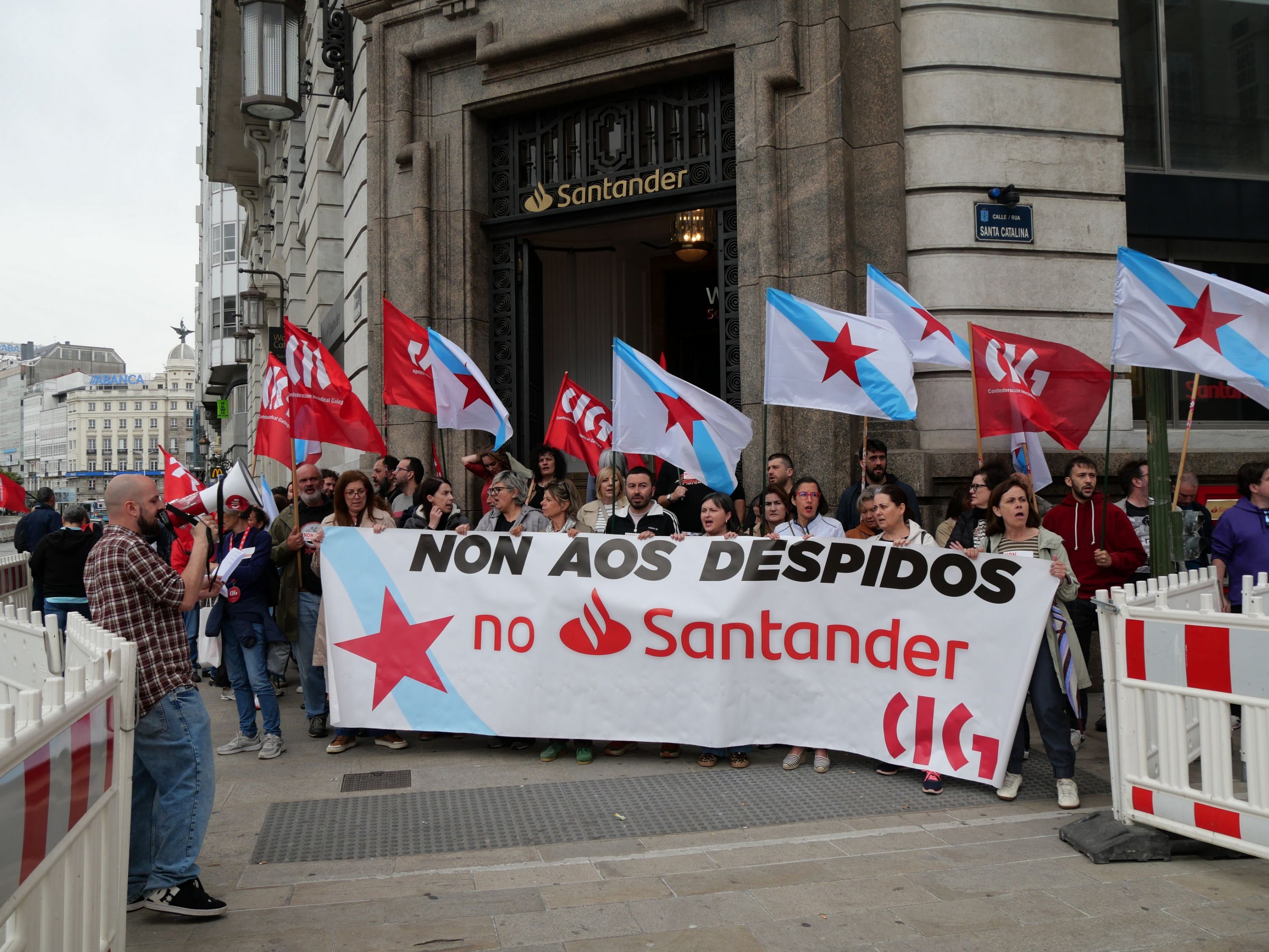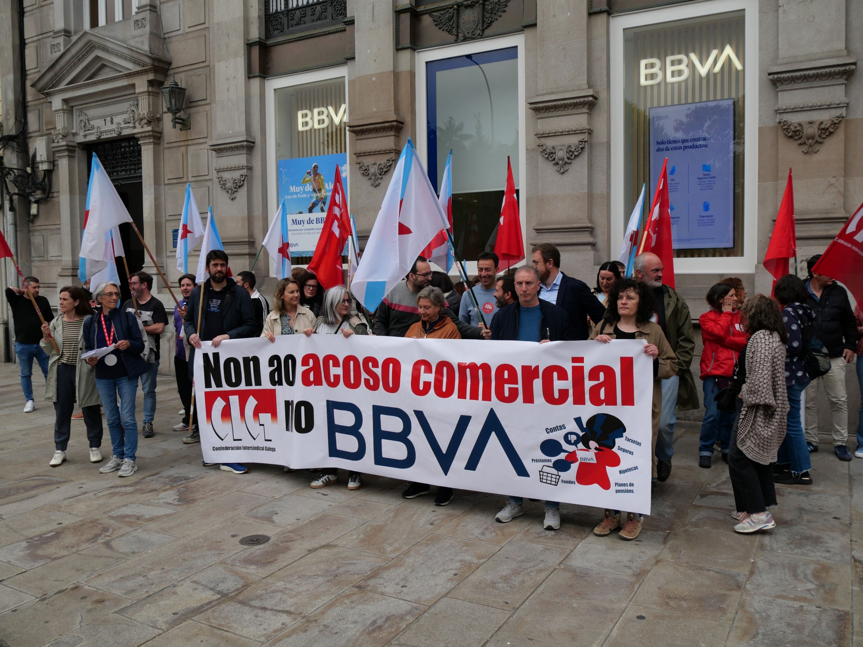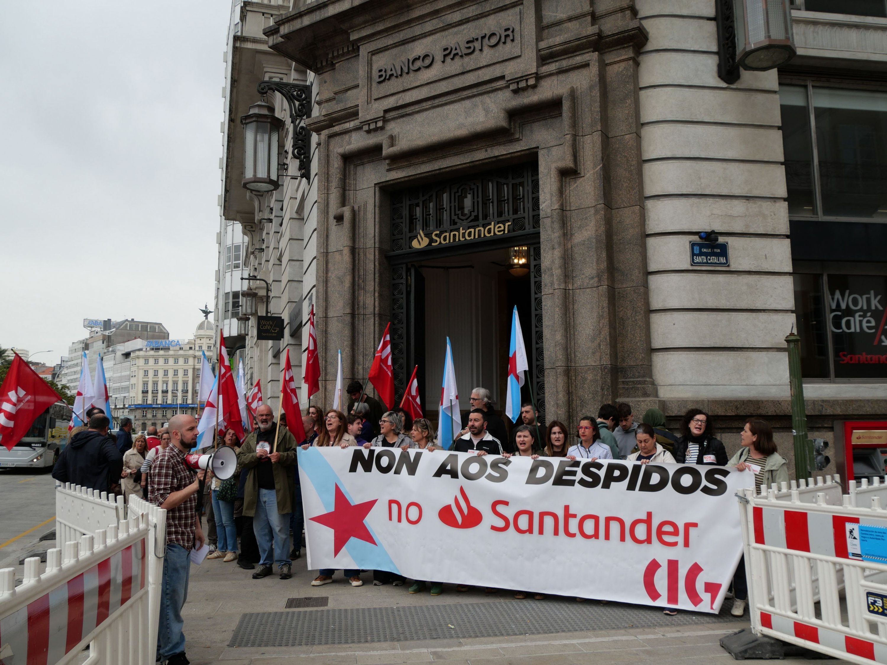 Xornada de protestas contra a presión comercial no BBVA, os despedimentos no Santander e a represión sindical en Abanca