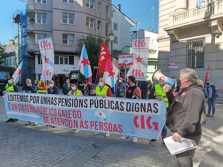Xubilados/as e pensionistas da CIG concentráronse esta mañá nas sete cidades e Bueu para protestar contra a reforma das pensións que se está a tramitar no Congreso dos deputados, porque “non garante unhas pensións dignas e consolida os recortes que supuxeron unha redución das pensións en 2011”.