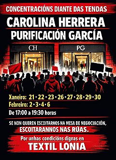 Anuncian a convocatoria de 12 novas concentracións en tendas de Carolina Herrera e Purificación García durante os meses de xaneiro e febreiro