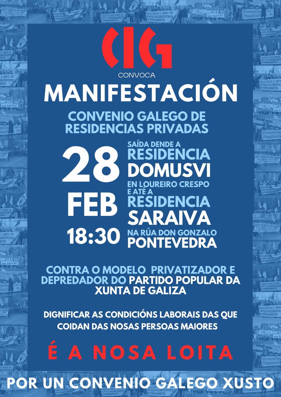 A CIG-Servizos convoca unha manifestación en Pontevedra por un convenio digno nas residencias privadas