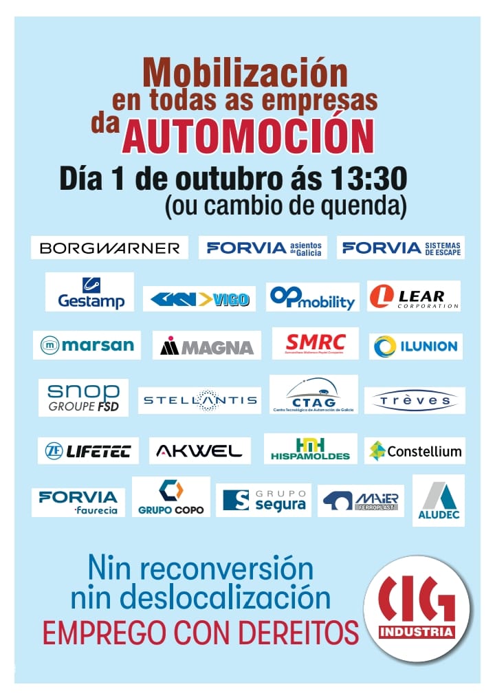 A CIG convoca protestas simultáneas en todas as empresas da automoción galega
