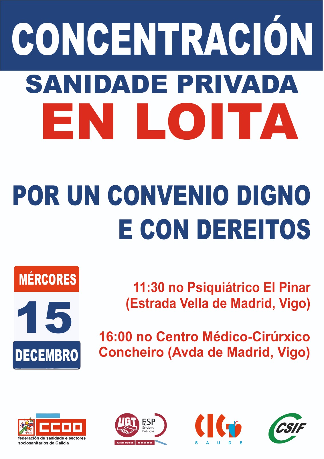 O persoal da sanidade privada pontevedresa convoca protestas por un convenio con dereitos