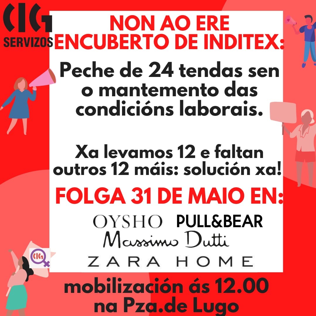 A CIG convoca folga na provincia da Coruña contra o "ERE encuberto" que Inditex está a aplicar nas tendas