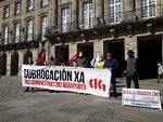 Os traballadores da liña Santiago aeroporto concéntranse para reclamar a súa inmediata subrogación