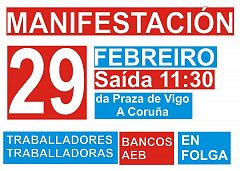 Unha manifestación na Coruña centrará a xornada de folga convocada para este xoves nos bancos AEB