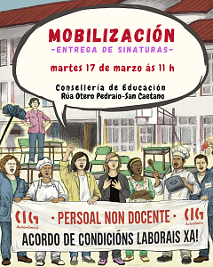 A central tamén fará entrega das sinaturas recollidas entre as traballadoras e traballadores de administración e servizos dos centros educativos
