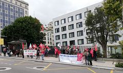 Traballadoras/es da residencia de maiores desenvolveron hoxe unha concentración en Pontevedra coincidindo co acto de conciliación no SMAC