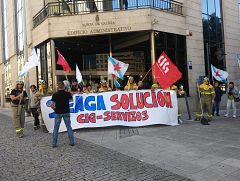 Persoal de SEAGA protesta en Ferrol para pedir que se compute a súa experiencia na extinción de incendios