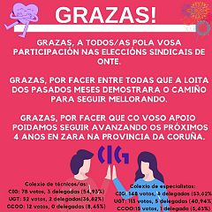 A CIG obtén a maioría absoluta nas eleccións de Zara na provincia da Coruña ao lograr 9 delegadas dun comité de 17