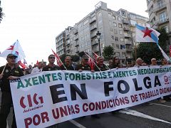 Os axentes ambientais galegos claman en Vigo pola súa dignificación laboral e contra a política forestal da Xunta