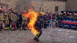 Un especialista representou o 'queimado' que está o colectivo por Rueda e Villanueva prendéndose lume ao 'bonzo'