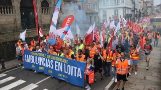 Centos de traballadores e traballadoras de ambulancias reclaman en Compostela un convenio digno