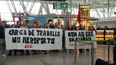 O persoal do aeroporto Rosalía de Castro está en folga na defensa dos empregos e para reclamar carga de traballo
