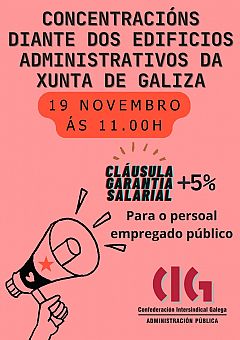 CIG-Administración convoca mobilizacións o 19 de novembro por unha suba salarial digna para o persoal empregado público