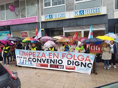 As traballadoras da limpeza tiran as fregonas e lánzanlle un recado á patronal: se non asinades, non limpamos