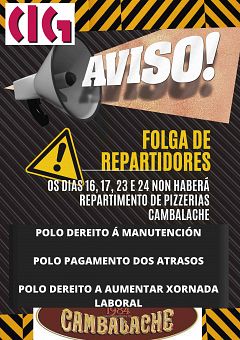 O persoal repartidor de Pizzerías Cambalache irá á folga para reclamar o cobro dos atrasos e melloras laborais