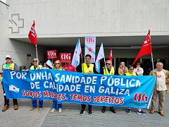 O Colectivo de xubiladas e pensionistas da CIG concéntrase nos hospitais para reclamar unha atención digna e áxil