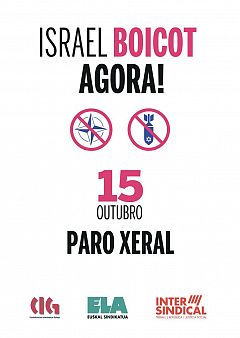 CIG, ELA e Intersindical unen os seus paros do 15 de outubro para exixir a gobernos e empresas o boicot a Israel
