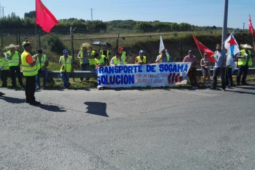 Traballadores/as do transporte de residuos de SOGAMA concéntranse diante da empresa en demanda de traballo digno